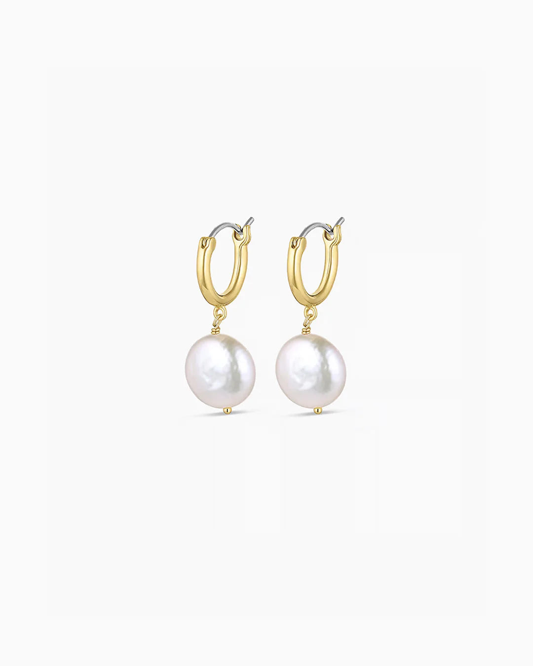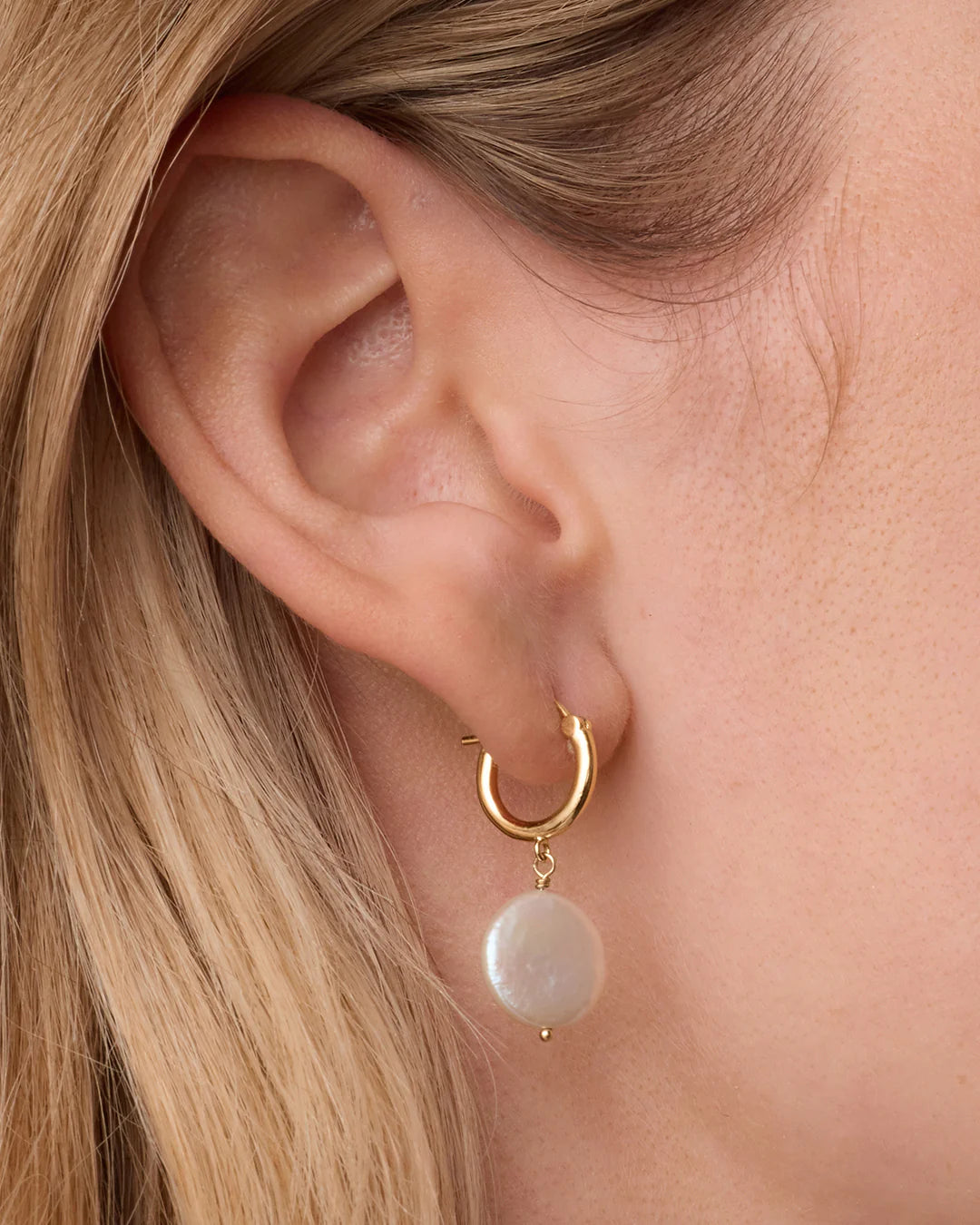 - Model is wearing the Reese Pearl Huggies and Farrah Huggies.